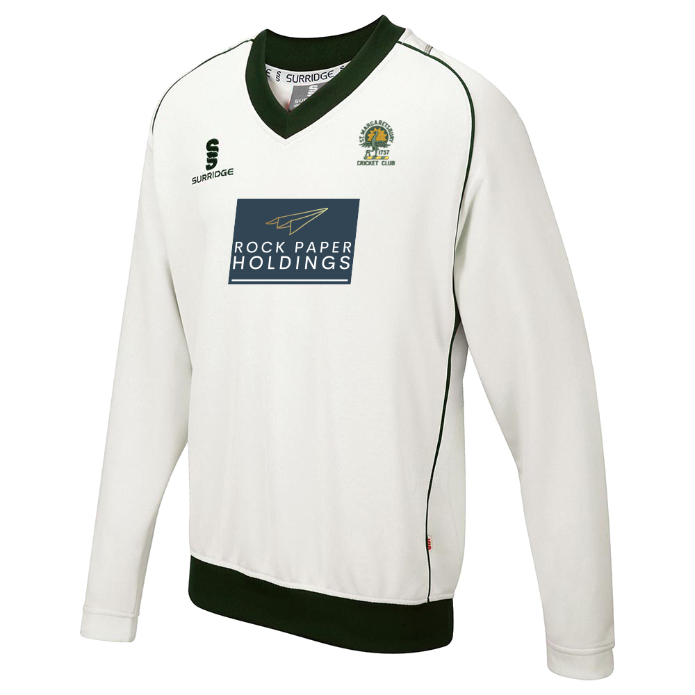 St Margaretsbury CC - Adults Long Sleeve Sweater Green Trim